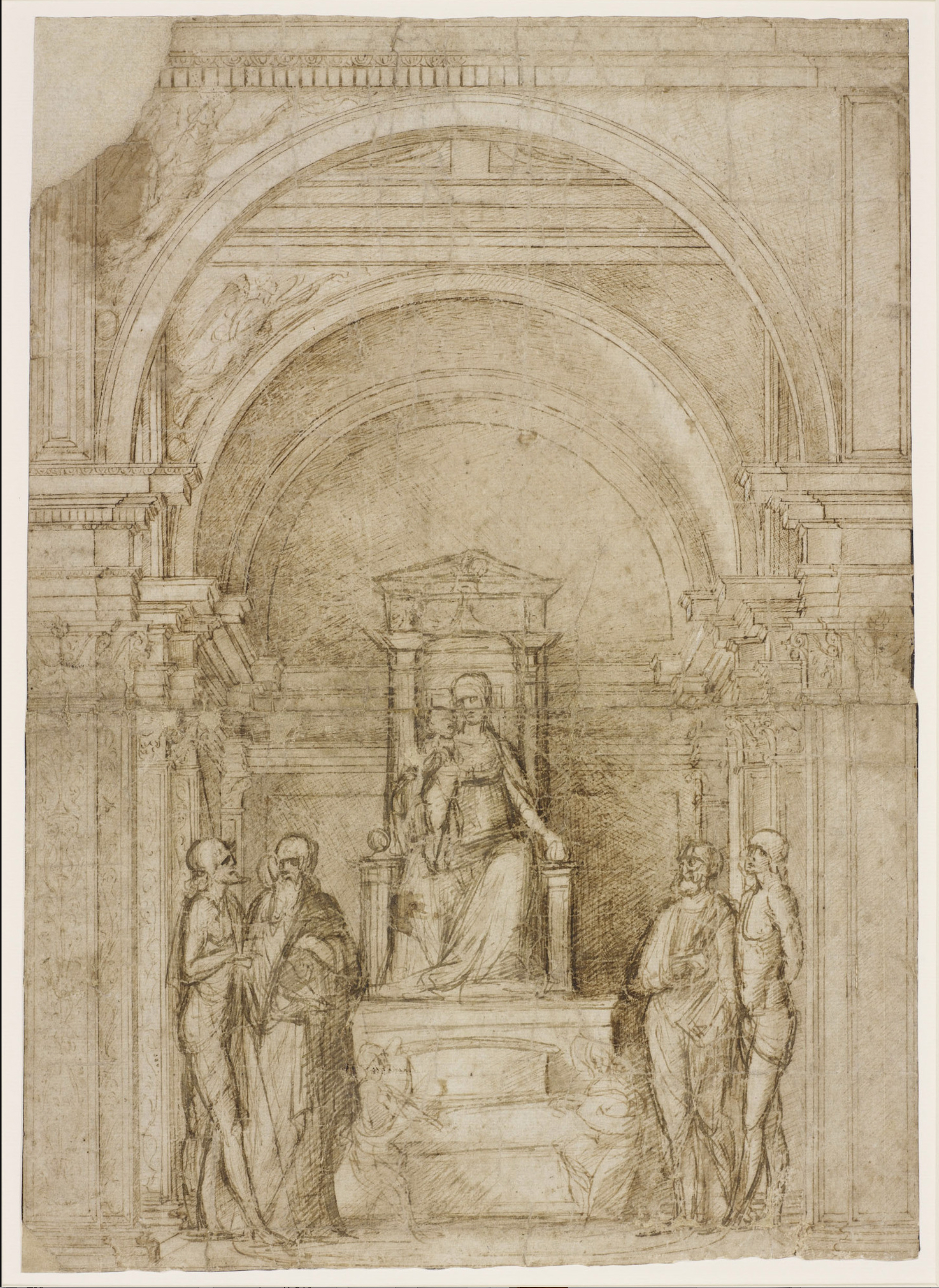 Vittore Carpaccio (1460/65-1525/26), design for an altarpiece, pen-&-ink, wash, black chalk, 48.5 x 32.3 cm., KKS6269, Statens Museum for Kunst, Copenhagen