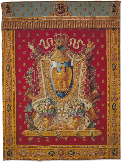 François Dubois (d.1824), after Jacques-Louis de la Haymade de Saint-Ange (1780-1860), portière with Les Grandes Armes de l’Empire français, Manufacture des Gobelins, 1809-11, wool & silk, 328 x 246 cm., Mobilier national, Paris