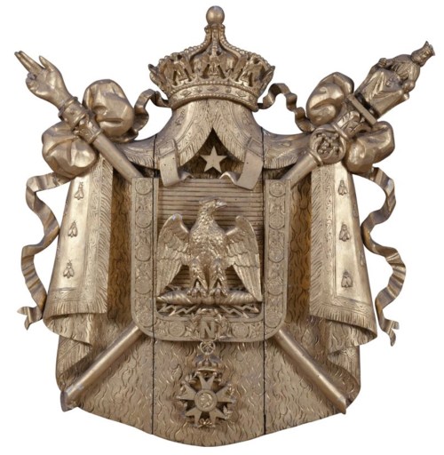 Les Grandes Armes de l’Empire français, carved & gilded armorial bearings, French, 19th century, 85 x 77cm., Adam’s Country House Collections, Townley Hall, Drogheda, Co. Louth, Ireland, 10 October 2017, lot 355