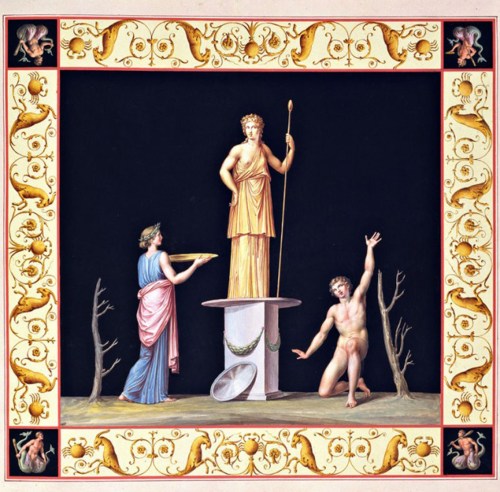 Brenna, Smuglewicz, & Carloni, reproduction of a Roman fresco in tempera for an engraving, published in Vestigia delle terme di Tito by Lodovico Mirri, 1776-78