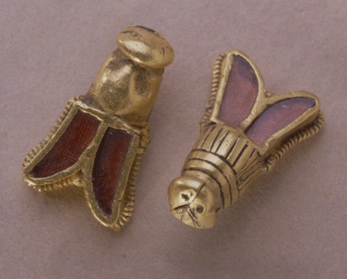 Childeric’s bees, gold & garnets, 5th century, each 1.6 x 1.05 cm., fastening on reverse, Bibliothèque nationale de France