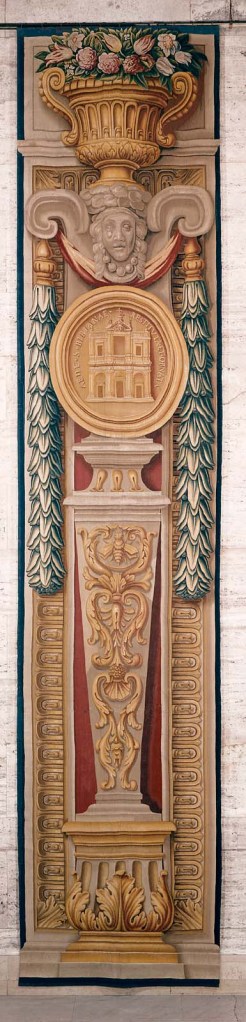 Pilaster panel, Life of Pope Urban VIII cycle, 1663, tapestry, wools & silk, 222 x 48 ins (563.9 x 121.9 cm.), one of four, MFA Boston