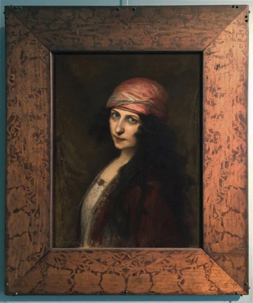 Lot 511: Berthe Burgkan (1855-1936), ‘Le Fascino‘, 1903, pastel, 63 x 54 cm., described as ‘in its original frame as designed by the artist’