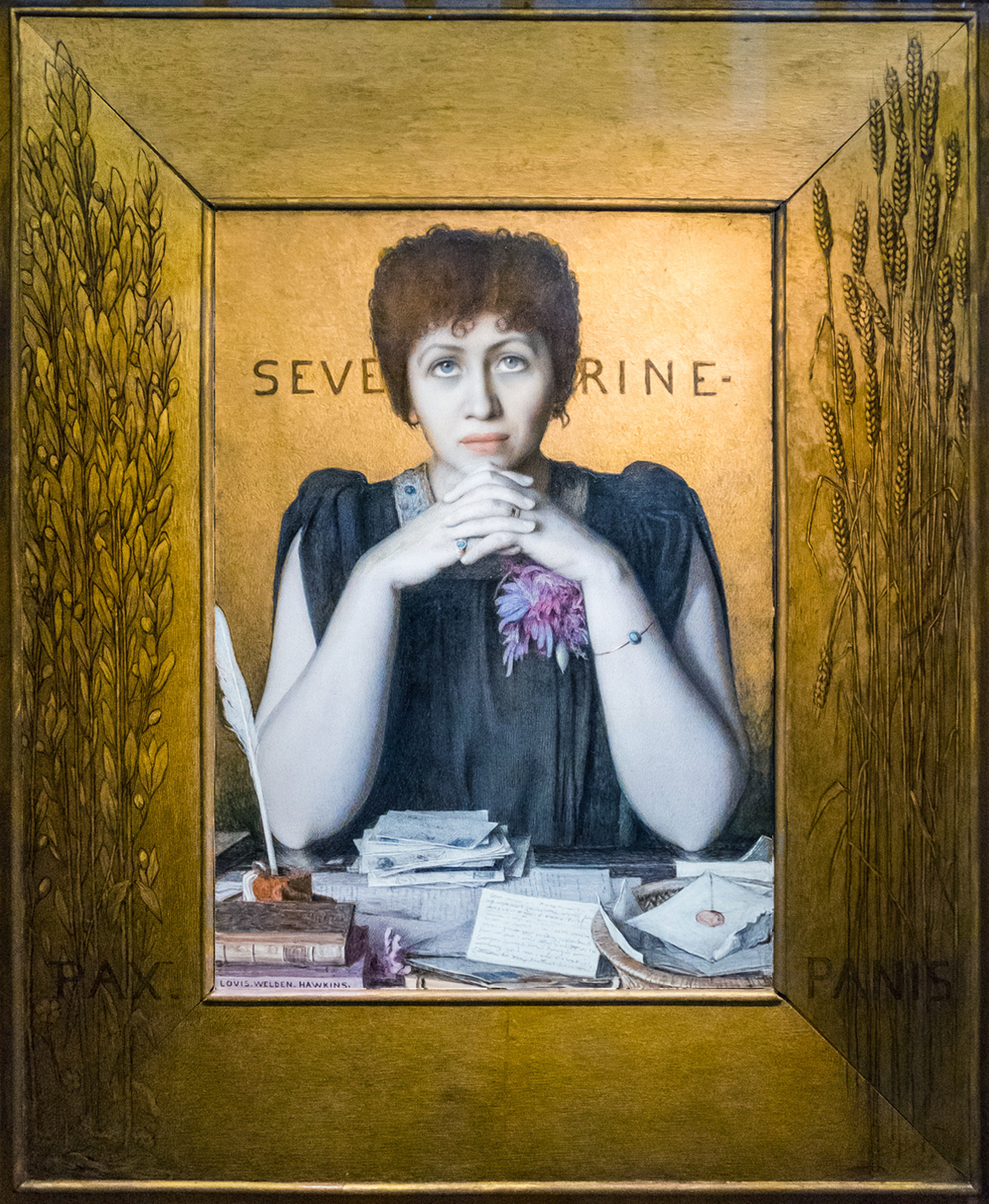 He is perhaps best known for his extraordinarily decorative portrait of the journalist, Séverine, for which he made – or at least decorated – the frame, to reflect the socialist beliefs of the subject. It is made of gilded oak with minimal mouldings, painted in monochrome, and inscribed PAX on the left, beneath olive branches, and PANIS on the right with stalks of corn. Setting aside the trophy frames freighted with symbols and emblems designed for the images of monarchs, this must be a relatively singular and early example of a political frame.