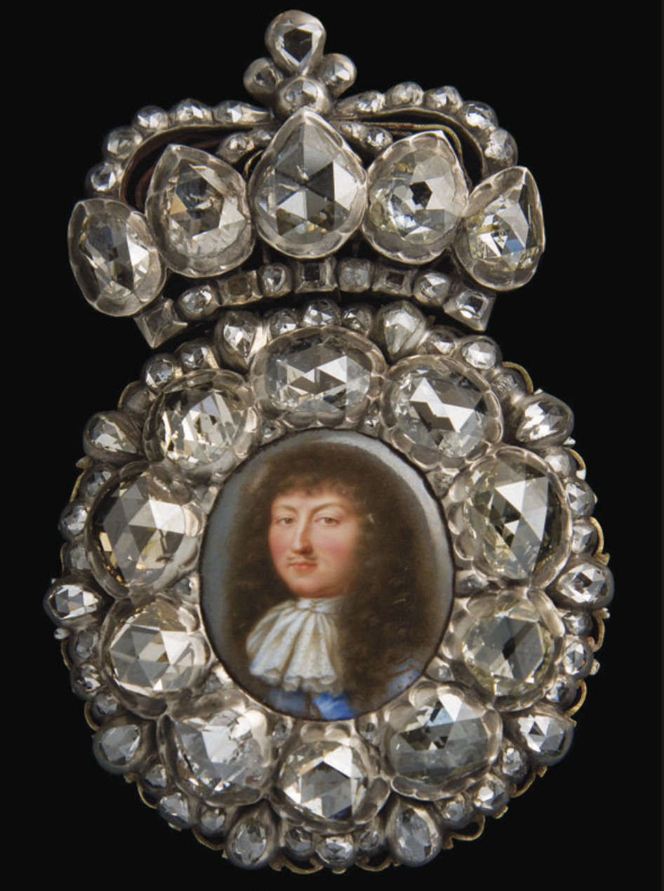 Louis XIV had a taste for gems, and consequently led the fashion in jewelled ornaments. Most contemporary avant-garde jewellery was in fact worn first by the king, then by noblemen. and only later adapted for the use of women. The idea of the ‘boîte à portrait’ arrived in the 1660s, when the king was searching for a diplomatic gift to encapsulate ideas of friendship, wealth, prestige and beauty.