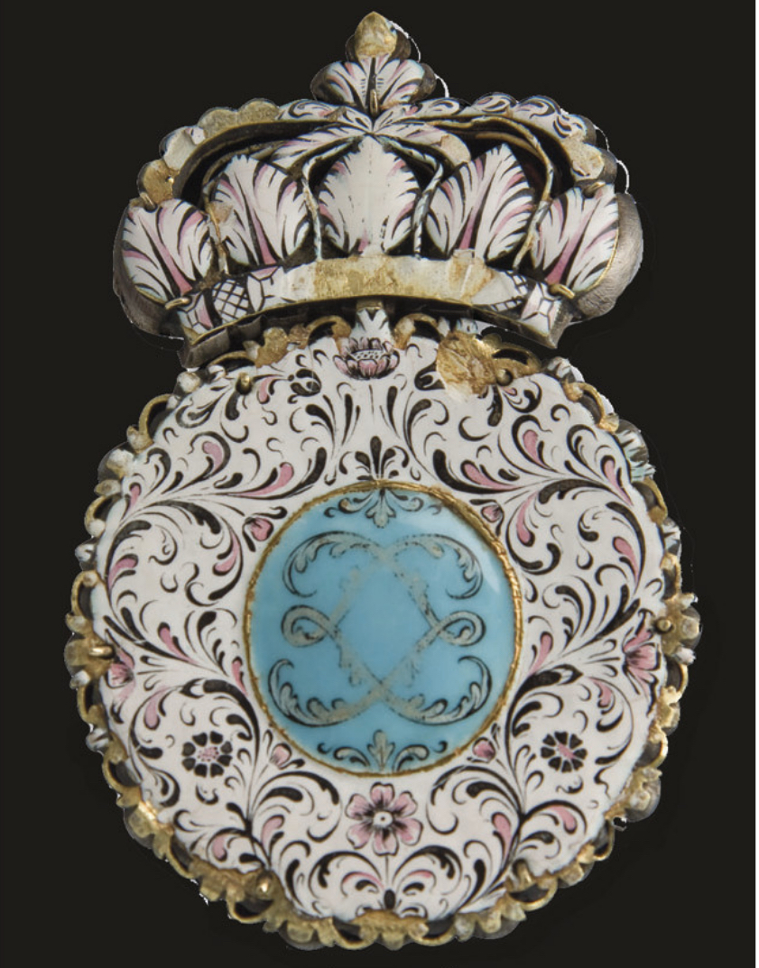Finally, the third and probably the most beautiful surviving example was acquired by the Louvre in 2009. We have no evidence of its provenance, and therefore do not know who was presented with this jewel, which survives in its entirety with the enamel still freshly preserved. The portrait was previously in the collection of Yves Saint-Laurent (Pierre Bergé).