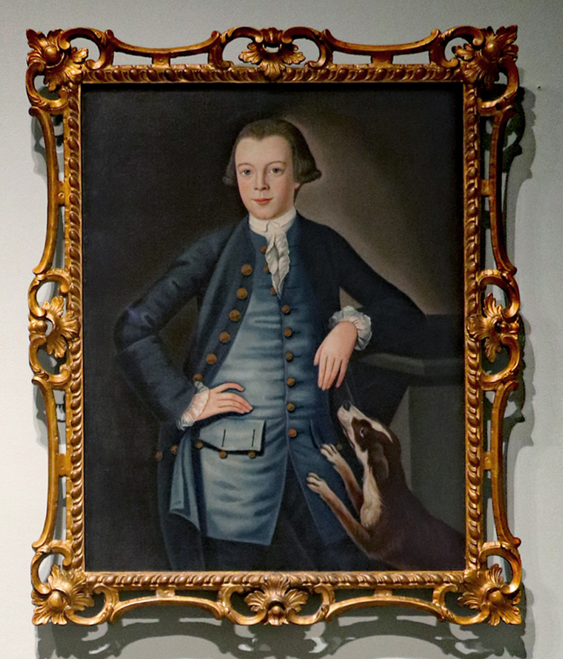 We are not told about the frames of those pictures, but it is clear that they, like the paintings and furniture, would have been executed in England, and laboriously transferred in the hold of some sailing ship across the Atlantic. They would almost certainly have been quite plain, with a simple architrave or entablature profile – in other words, with a flat central frieze bordered by mouldings, like a cassetta. They would probably have been made of oak, the wood most commonly used in England for the making of furniture, or perhaps of fruitwood; and they would have been stained black or painted in sober colours, and possibly parcel-gilt.