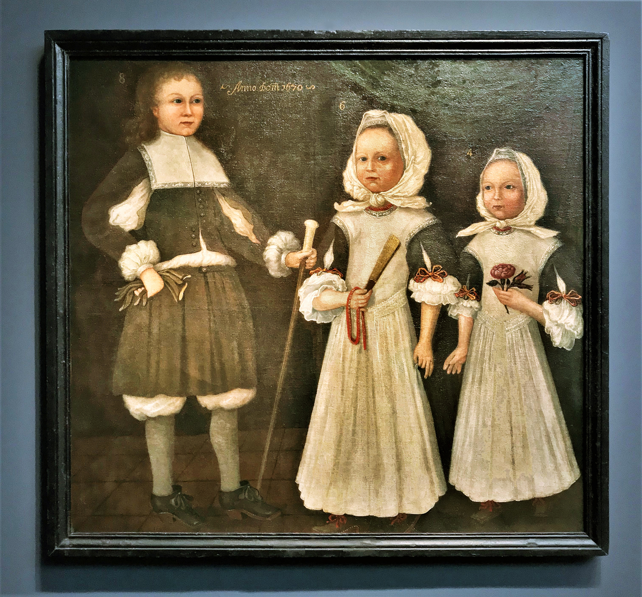 For these settlers, the paintings they took with them would be, as Hawthorne observed, the early family portraits which formed their various pedigrees, as well as pictures of immediate family left behind in England. The Shrimptons of Boston, for instance, were sent by her father, Nicholas Roberts, portraits of Mrs Shrimpton’s parents from England; this was in September 1674, and these first two paintings were followed the next year by portraits of the couple themselves, and of Mrs Shrimpton’s grandmother and sisters: