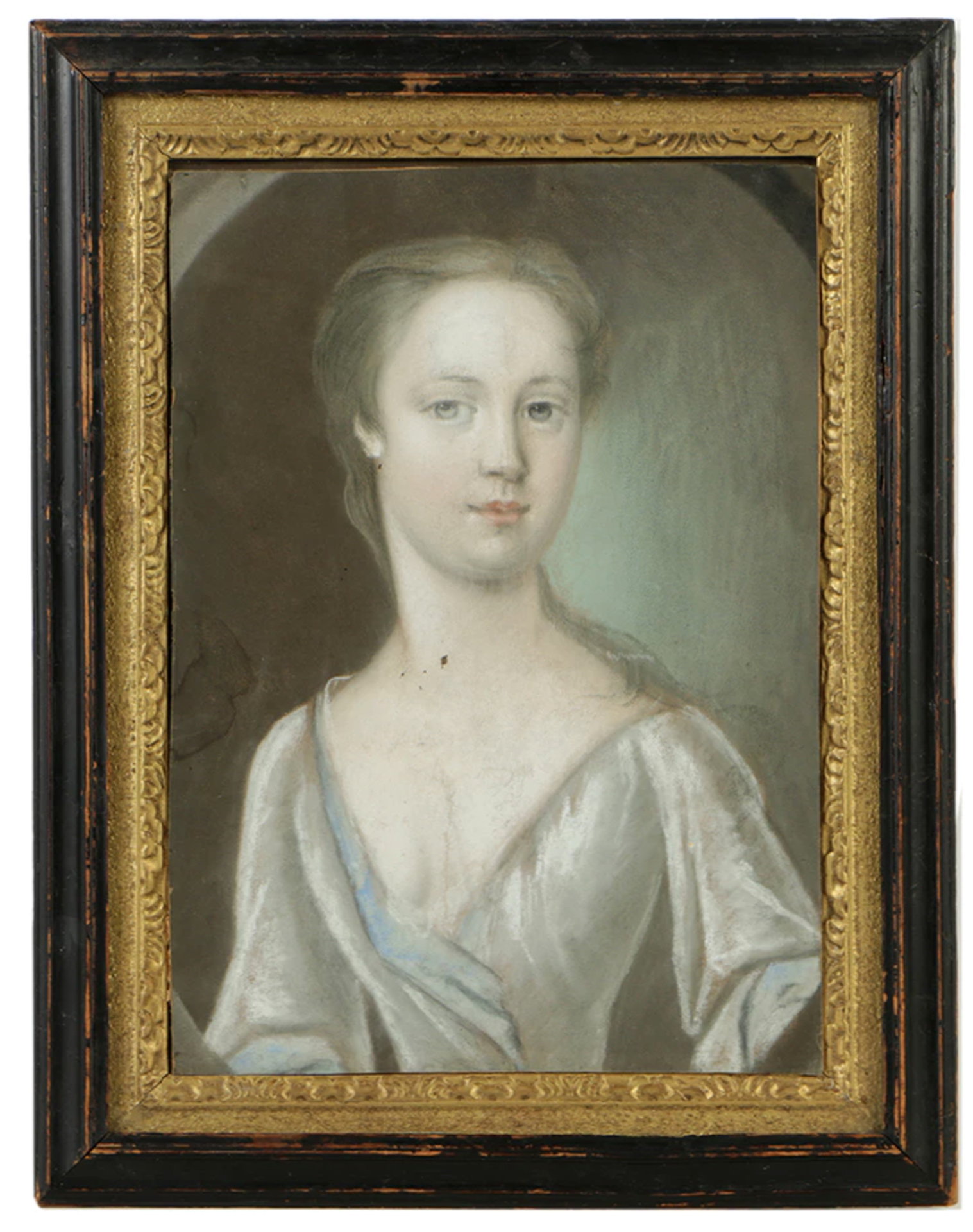 Henrietta Johnston (c.1674-1729), Mary Mundt of Philadelphia, 14 x 10ins, and detail, Brunk Auctions, 14 July 2018, Lot 1277 (with many thanks to Neil Jeffares)