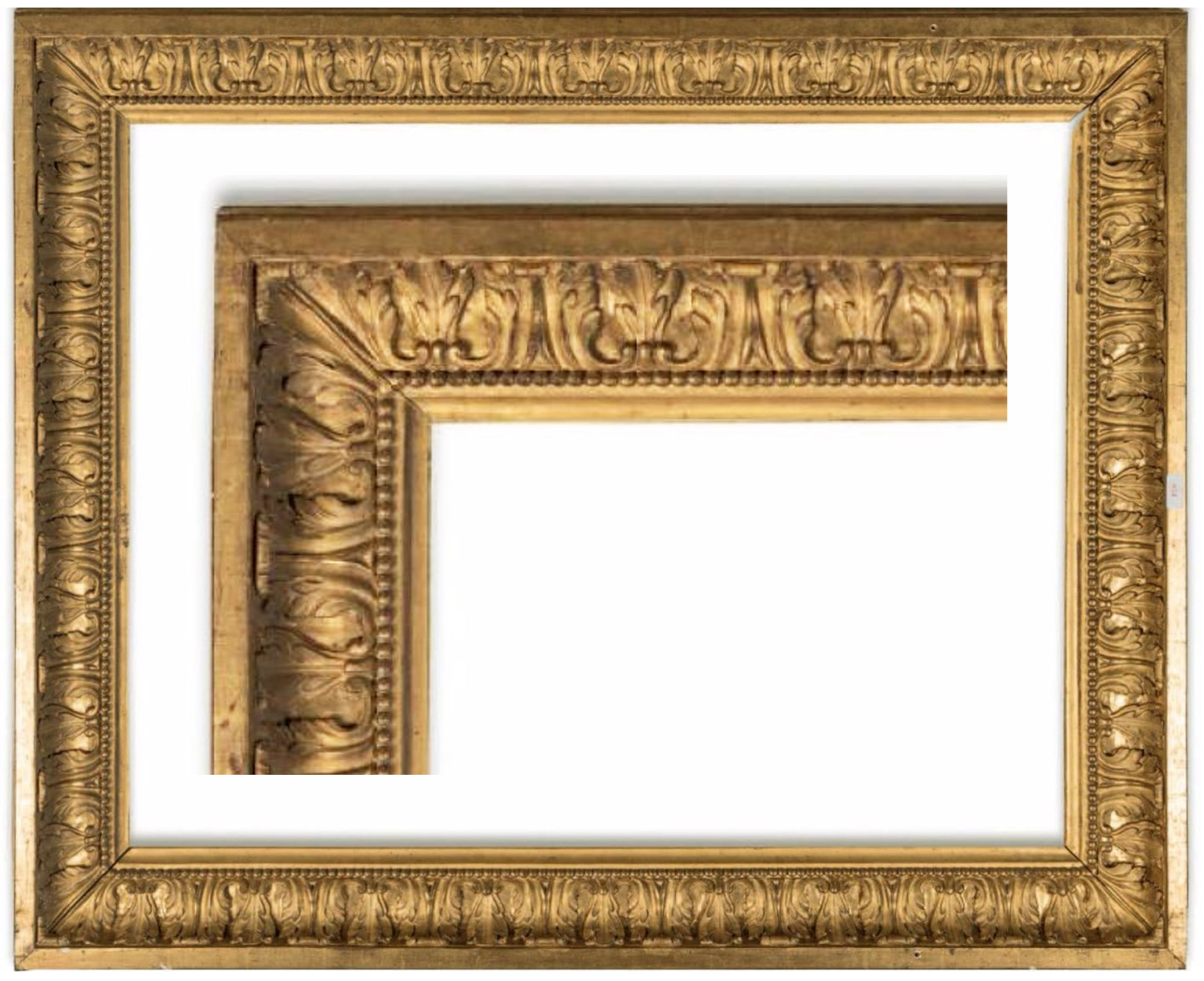 Lot 624 Large 18th century French Louis XVI NeoClassical scotia frame, finely carved in oak, with cross-cut acanthus leaves alternating with oak leaves & acorns in the hollow; beading at the sight edge; gilded