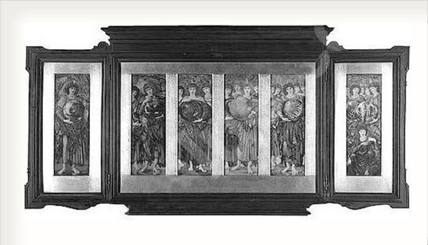 ‘The great Frideswide screen stood in a seldom-used studio, and I finally induced Birket Foster to pass it on to me; when I detached the panels, framing each separately in a narrow band of black, under Burne-Jones’s direction.’ [49]
