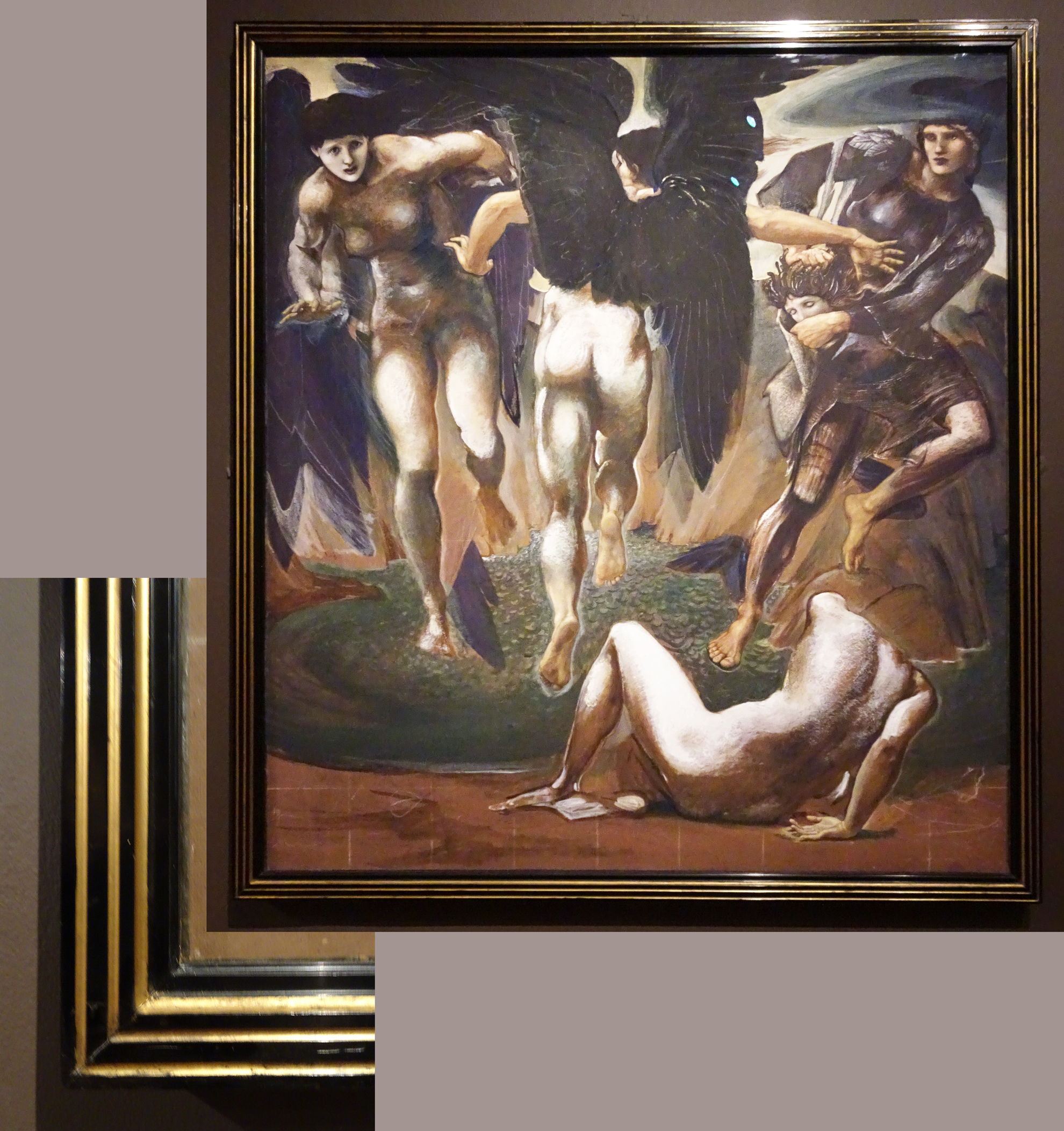 Burne Jones, Venus Discordia, begun 1872, 50 x 82ins, detail of frame now on this painting but made for a larger work, National Gallery of Wales, Cardiff