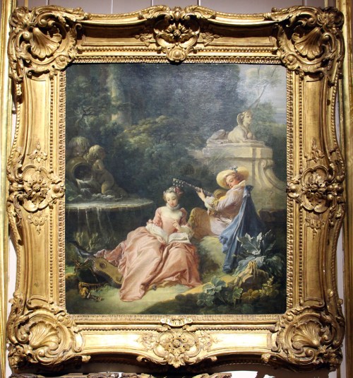 FB: Other examples of your photos, like this group showing Boucher’s Music lesson in its Transitional frame (rather later than the painting), include the whole work and its setting, and then progressively closer details. This is a particularly striking group – as though the approach to the painting by a viewer in the gallery is being mimicked in a series of high-resolution still shots, allowing the online viewer to see the framed work on the wall, and then move nearer and nearer. The Musée Cognacq-Jay does have three photos of this work on its website, including one in the frame, but in other examples are you perhaps trying to supply images which you think should be made available by the institutions themselves?
