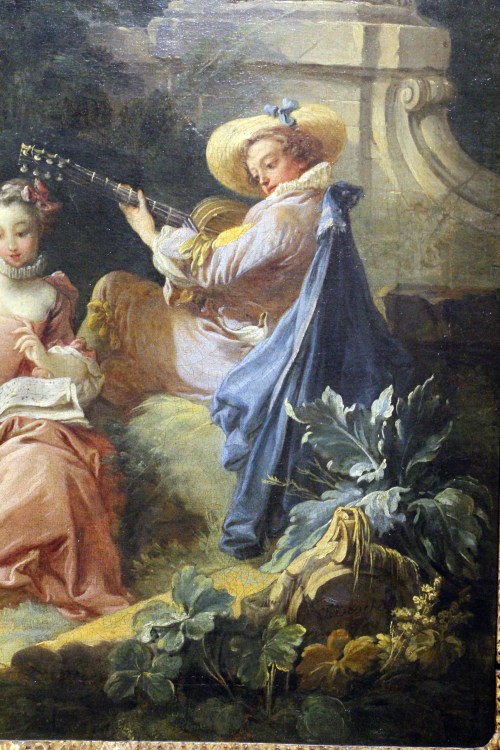 François Boucher (attrib.; 1703-70), La leçon de musique, 1749, o/c, 65 x 57.9 cm., with details, Musée Cognacq-Jay