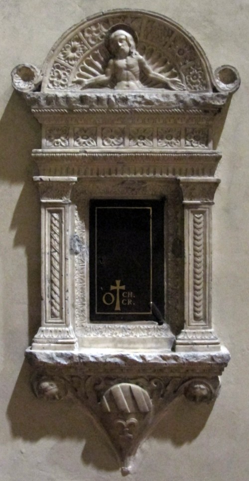 FB: For me, one of your photos that I was really happy to find was this one, above, of the Assumption of the Virgin, painted by Il Volterrano when he was only twenty. I wanted it for an article on the painter to show his early work, and also because his father was a sculptor and woodcarver, and may have made this frame for his son’s altarpiece – thus possibly launching him into a career which included a great many designs for moveable frames, as well as wall and ceiling frescos with integral painted borders. The picture was commissioned for the cathedral of Volterra, moved to the Oratory of Sant’Antonio Abate, and is now in the Diocesan Museum; however, you found it, and took a really good photo of it (please forgive the fact that I have tweaked it in Photoshop – sometimes I need to straighten images because the pictures were evidently hung impossibly high, above even your reach).