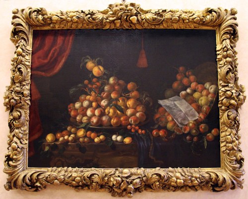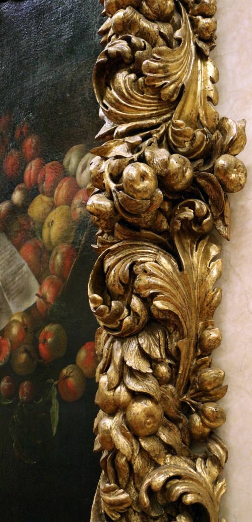 I also love the frames made by Vittorio Crosten displayed in the still life museum, the Museo della Natura Morta at the Medici Villa in Poggio a Caiano (near Florence): Crosten was one of the best woodcarvers of his time in Italy, and those frames were commissioned by the Grand Duke of Tuscany to ‘extend’ the still life paintings of products cultivated in the Medici estates. It’s a joy to observe all those carved fruits and flowers merging into rich gilded volutes.