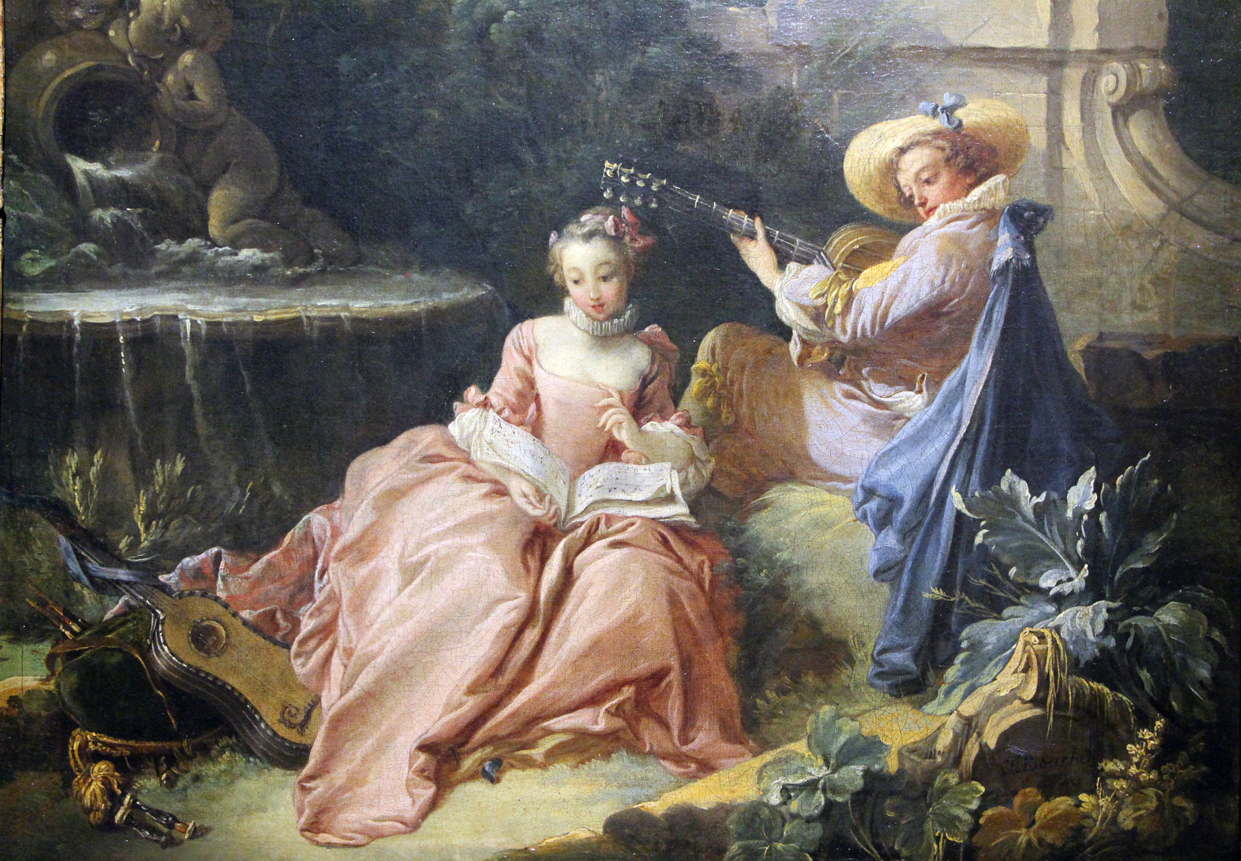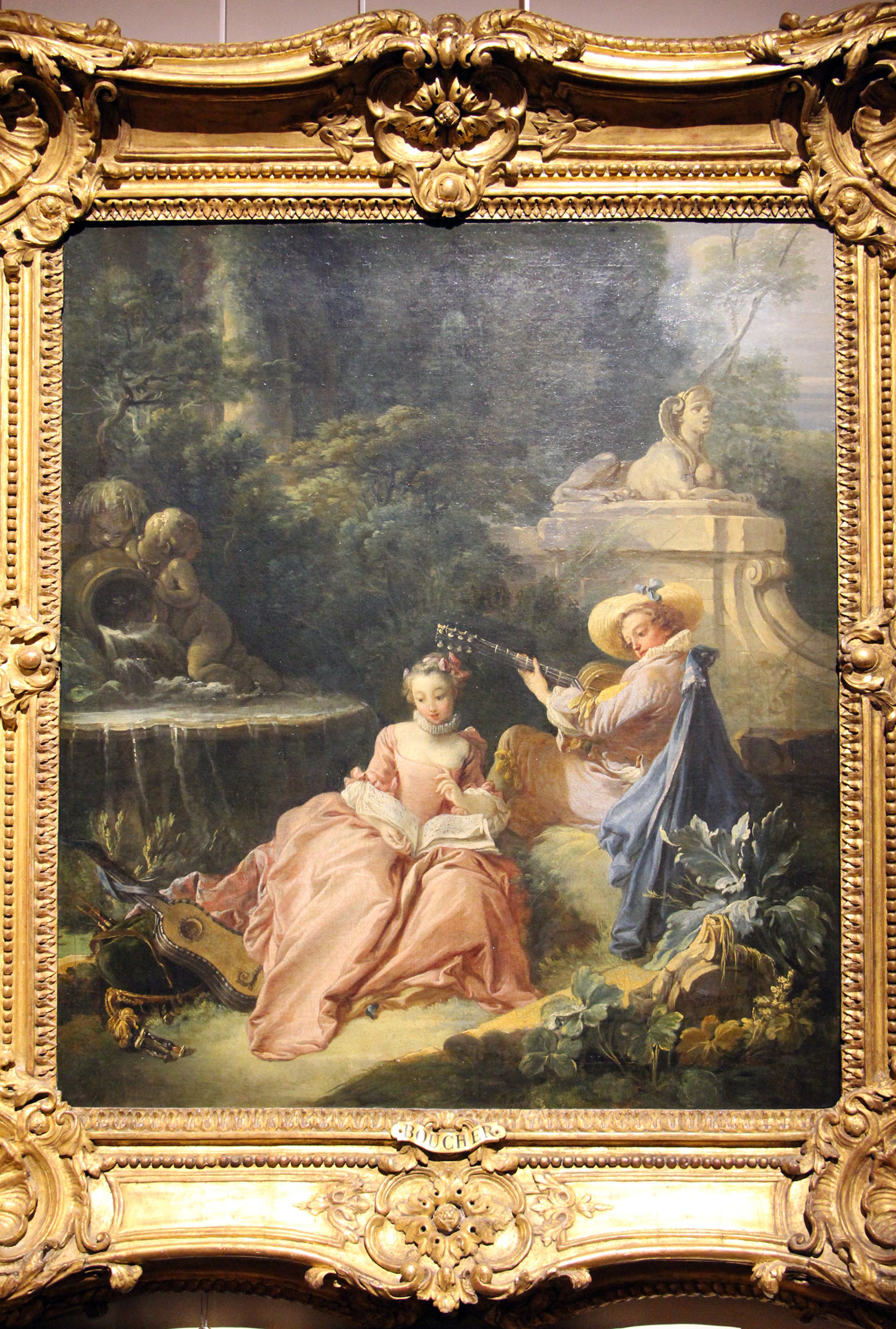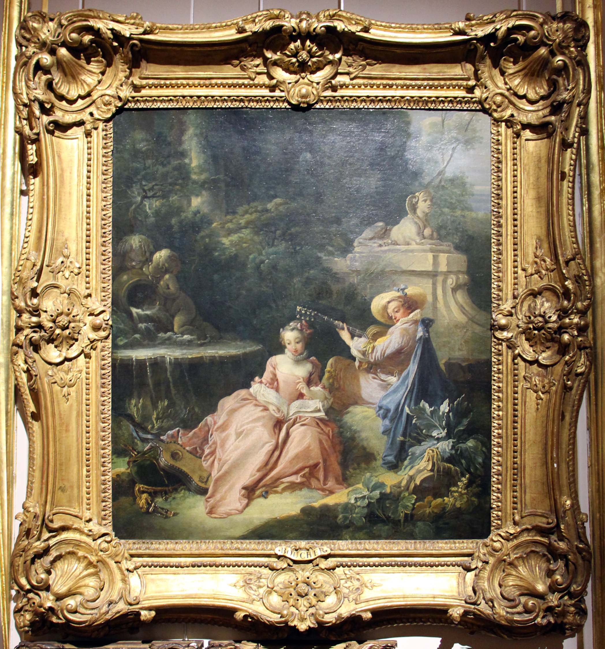 François Boucher (attrib.; 1703-70), La leçon de musique, 1749, o/c, 65 x 57.9 cm., with details, Musée Cognacq-Jay