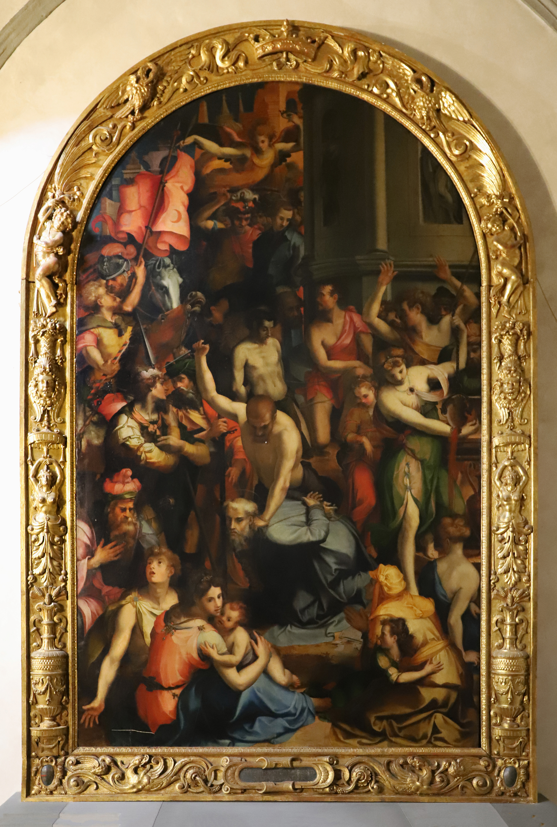 Carlo Portelli (d. 1574), The beheading of St Romulus of Fiesole, 1557, in original frame, and detail, Santa Maria Maddalena de’ Pazzi, Florence