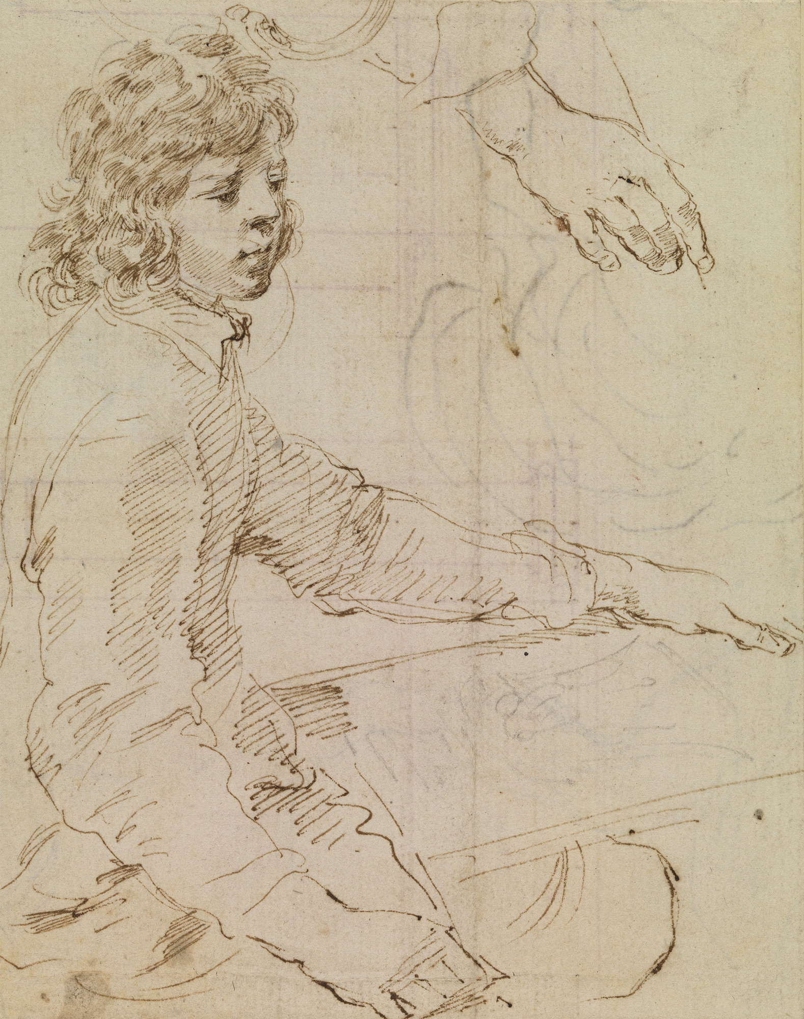 Stefano della Bella (1610-64), The young Cosimo III de’ Medici drawing the Medici vase, 1656, ink and chalk, 14 x 11.1 cm., Royal Collection Trust