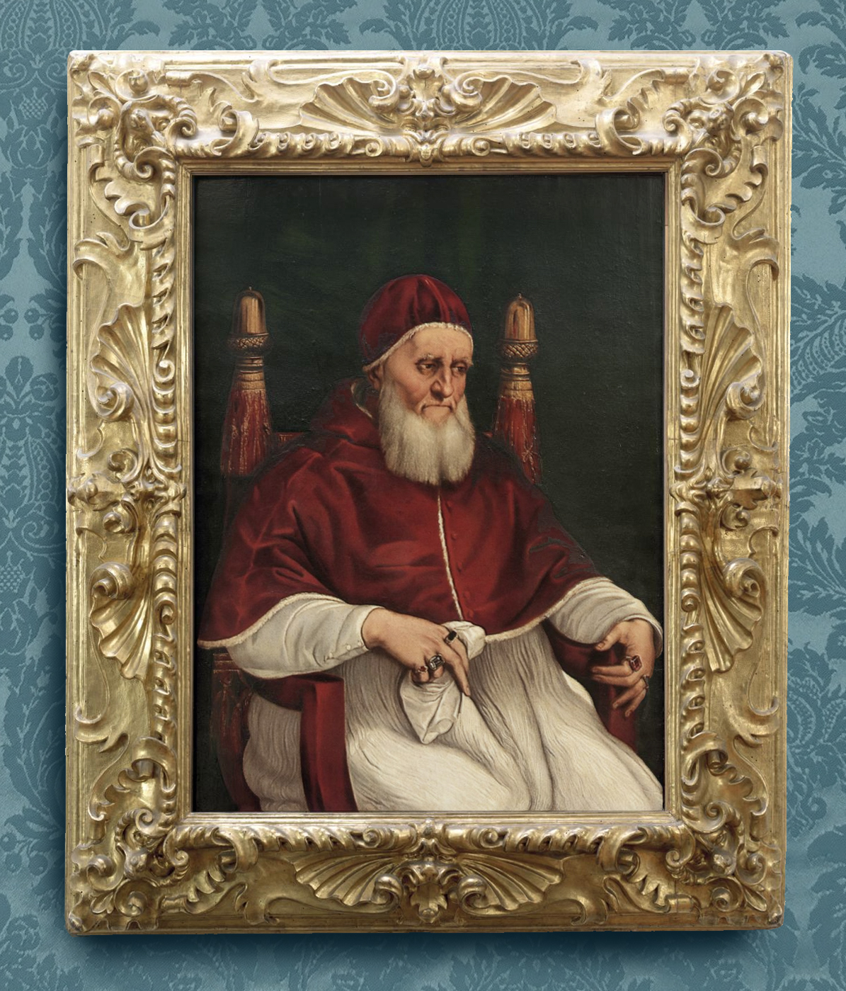 Raphael (workshop or copy; 1483-1520), Pope Julius II, 1511-12, tempera/panel, 107 x 80 cm., Gallerie degli Uffizi