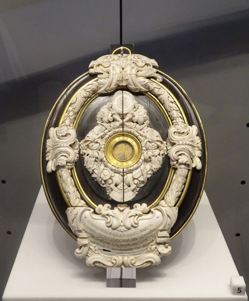 Ashmole knew Gibbons before commissioning the frame from him, having produced a horoscope for him the year previously. And just before that, in 1680-82, Gibbons had been commissioned by the king, Charles II, to carve a panel for him to present to Cosimo III de’ Medici as an emblem of the diplomatic ties between Britain and Tuscany.