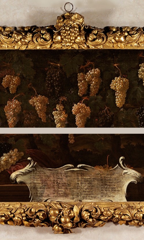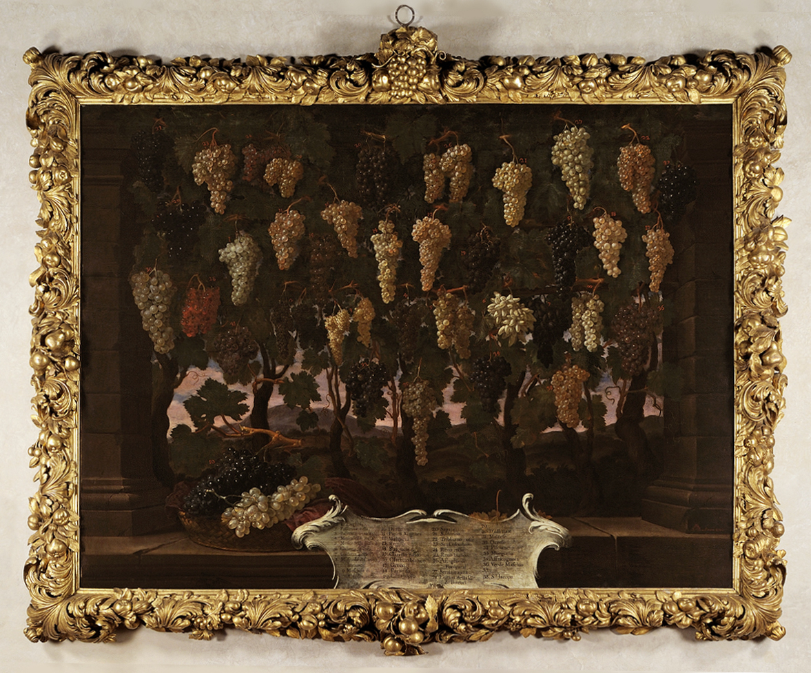 Bartolomeo Bimbi (1648-1729), Still life with festoons of grapes, frame by Vittorio Crosten (fl.1669-1704), Museo della Natura Morto, Villa Poggio a Caiano, Florence