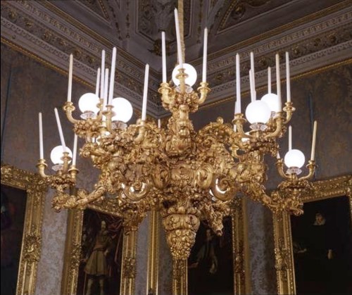 Vittorio Crosten (fl.1669-1704), giltwood chandelier, 1697, Sala Celeste, Palazzo Pitti