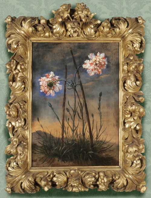 Bartolomeo Bimbi (1648-1729), Two carnations, 1700, o/c, 87 x 69 cm., frame by Vittorio Crosten (fl.1669-1704), 127 x 109 cm., Museo della Natura Morto, Villa Poggio a Caiano, Florence