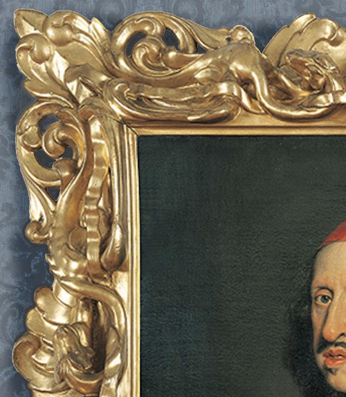 It is not clear when Sustermans’s portrait of Galileo was framed, although the emphatic volutes might possibly date it to the first half of the 17th century. It is weighty and sculptural, more assertively Baroque than fluidly Mannerist. It demonstrates the range of style and ornament within this type of frame, and the need for some overall consistency through the wider collections, as well as the variations within them. Portraits of popes, bishops and theologians were important, but so also were those of the scientists; Leopoldo de’ Medici was a follower of Galileo, and collected instruments associated with his work and that of others.