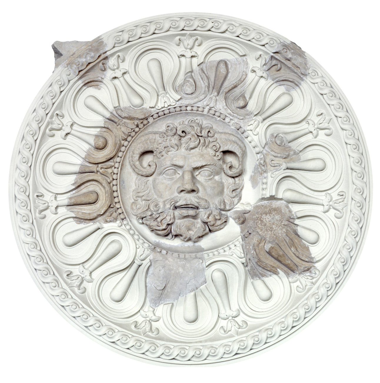 Fragmentary carved clipeus with Jupiter-Ammon, 1st century AD, Luni-Carrara marble, 120 cm. diam., National Archaeological Museum of Tarragona (MNAT)