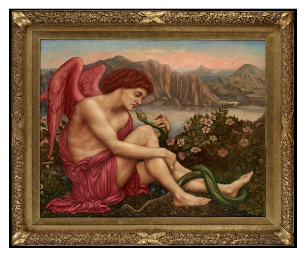 Evelyn De Morgan (1855-1919), The angel with the serpent, c. 1873-75, o/c, 35 x 44 ins (89 x 112 cm.), Martin Beisly Fine Art
