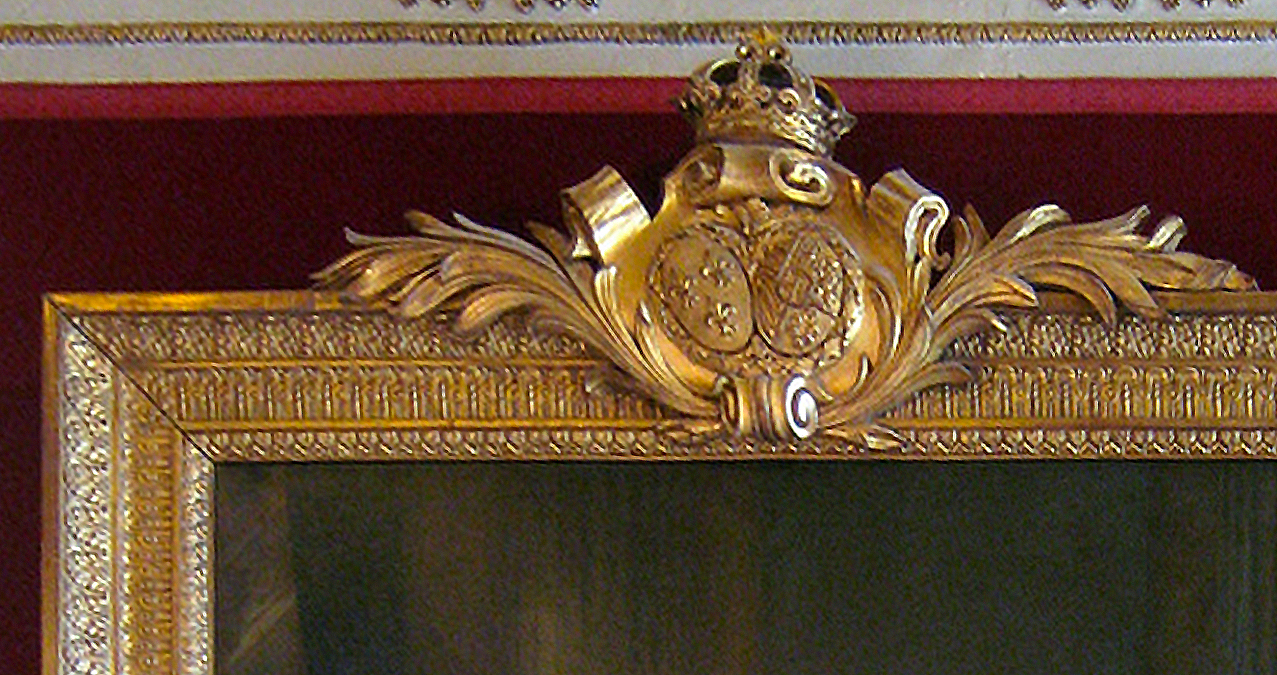 In these pared-back, classicizing frames with their simple profiles, the use even of a narrow band of the more complex acanthus leaf with its rhythmically overlapping leaves, slightly undercut around the contours, gives an impression of comparative richness. It contains and reinforces the tension within the prince’s portrait of the austere background and static pose against the embellished costume with its embroidery, orders and lace. However, with an additional outer moulding, a royal trophy at the crest, and festoons of tumbling flowers, the restraint of this classical model becomes the powerful and opulent setting for a portrait of Louis XVI, after Duplessis.