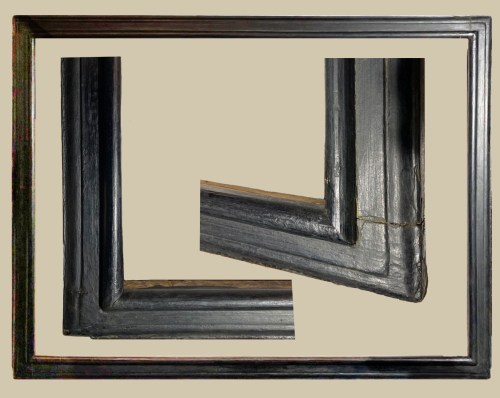 Lot 296: Baroque Spanish carved polychrome frame; bolection profile; painted black; probably 17th century; 76 x 103 cm.; estimate: €800-1,000