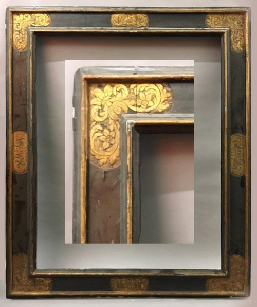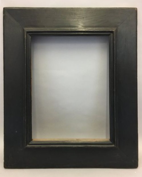 Lot 441: 17th century bolection frame, German, Austrian or Neapolitan; possibly fruitwood?, ebonized; with ripple mouldings at back edge, narrow torus with wave moulding, frieze with basket weave moulding, ripple mouldings, wave moulding at top edge, and ripple mouldings at sight edge; 34 x 28 cm.; estimate €600-800