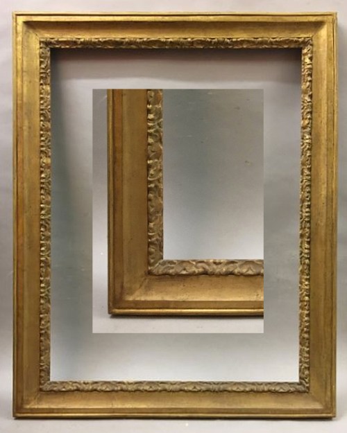 Lot 514: 18th century French Louis XV giltwood ogee (‘pastel’) frame, with centred gadrooned back edge, small sanded frieze, and acanthus leaf tip sight edge (cut down); with original gilding; 90 x 72 cm.; estimate €800-1,200