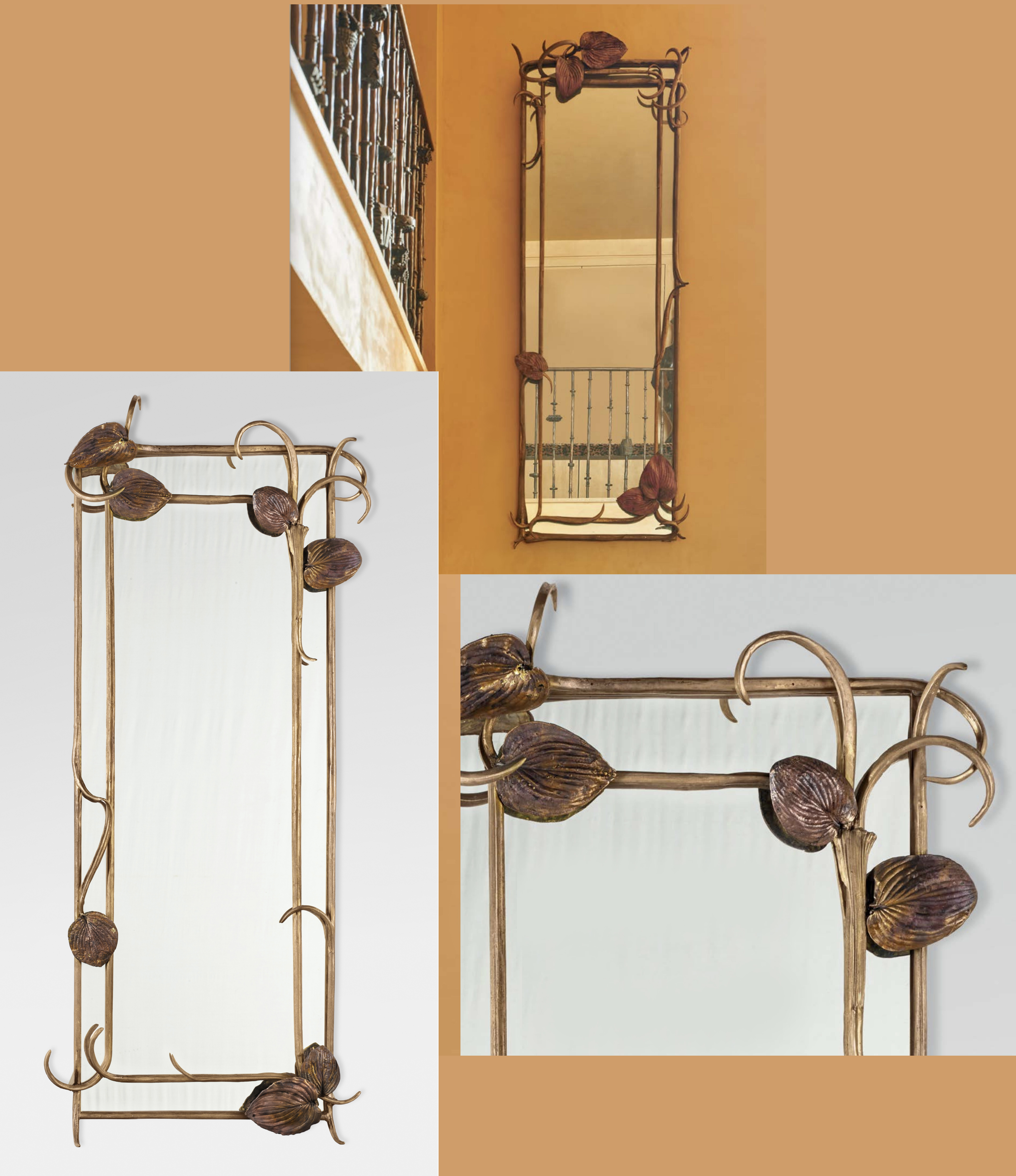 Lot 127: Claude Lalanne (1925-2019), Structure végetale looking-glass, 1996, gold patinated bronze, galvanized copper and mirrored glass, 198 x 87 cm., commissioned by the owner; in situ and detail; est.: £200,000-300,000