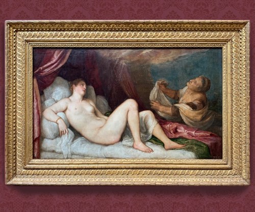 Titian (1490-1576), Danaë and the shower of gold, 1551-53, o/c, 114.6 x 192.5 cm., in new Pietà frame, Wellington Collection, Apsley House, London