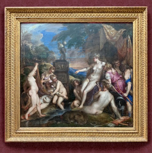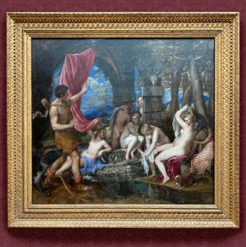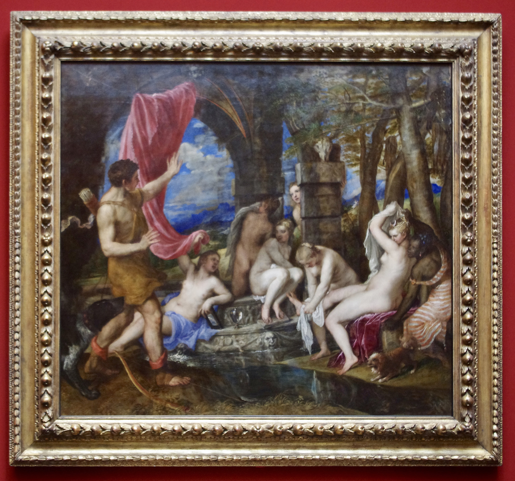 Titian (1490-1576), Diana & Actaeon, 1556-59, o/c, 184.5 x 202.2 cm., 19th revival of a Baroque garland frame, National Gallery & National Galleries of Scotland