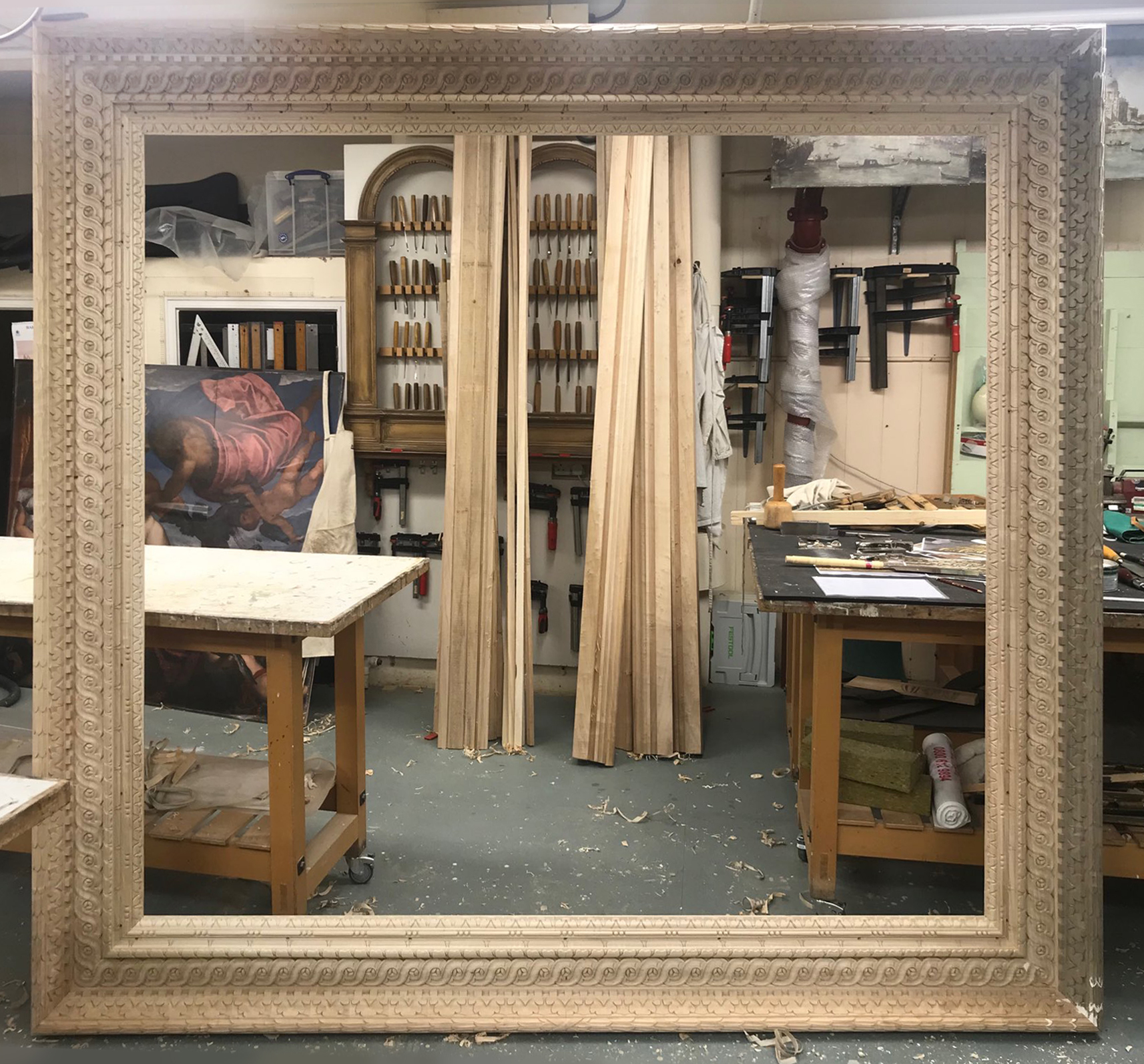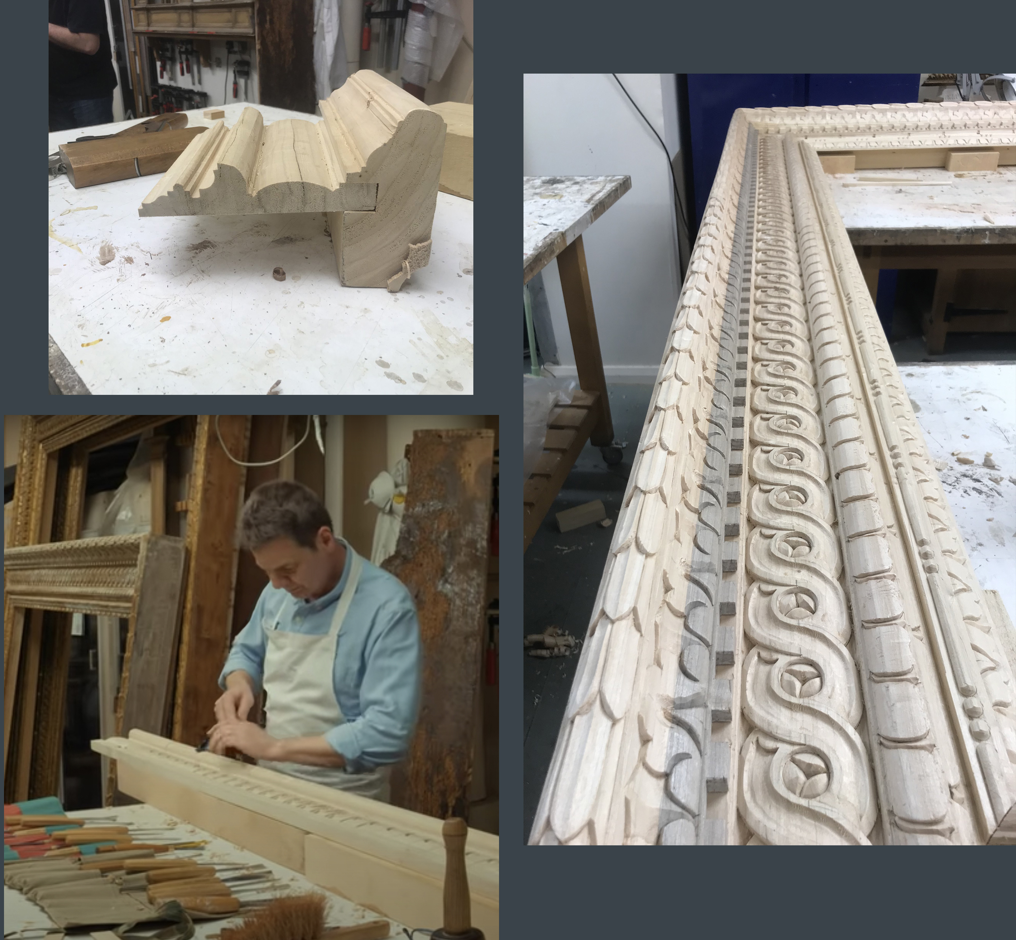 The profile of the frame; François Loudwig carving; a finished carved moulding