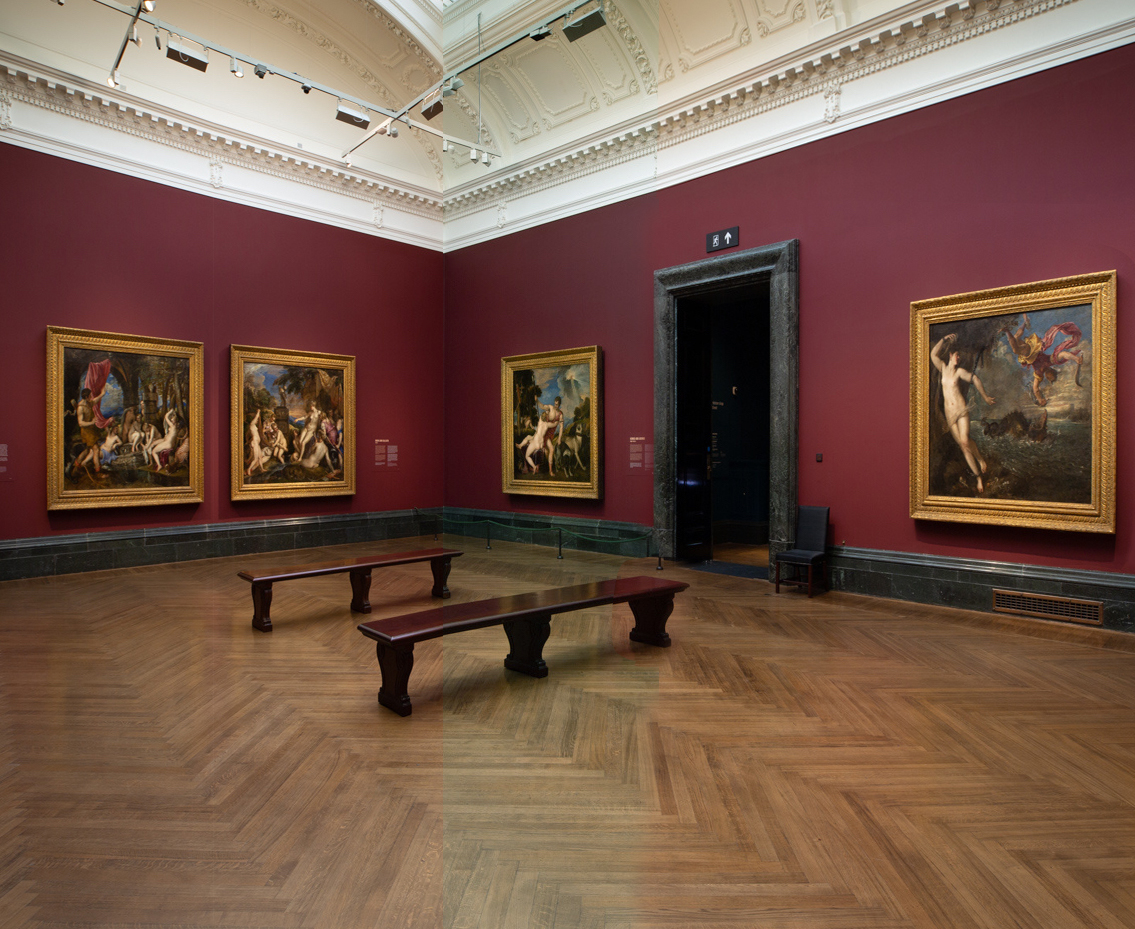 It was during this particular period that he appears to have been commissioned by Philip to create a series of mythological paintings, the subjects and treatment of which were left up to the artist. There was at first no idea of an integrated thematic hang (unlike the series painted for Mary of Hungary and for Alfonso I d’Este) within a single room, although the Museum’s catalogue entry for Venus and Adonis notes that François I’s decorative scheme of the 1530s-40s in Fontainebleau was ‘a source of inspiration for Philip II’.