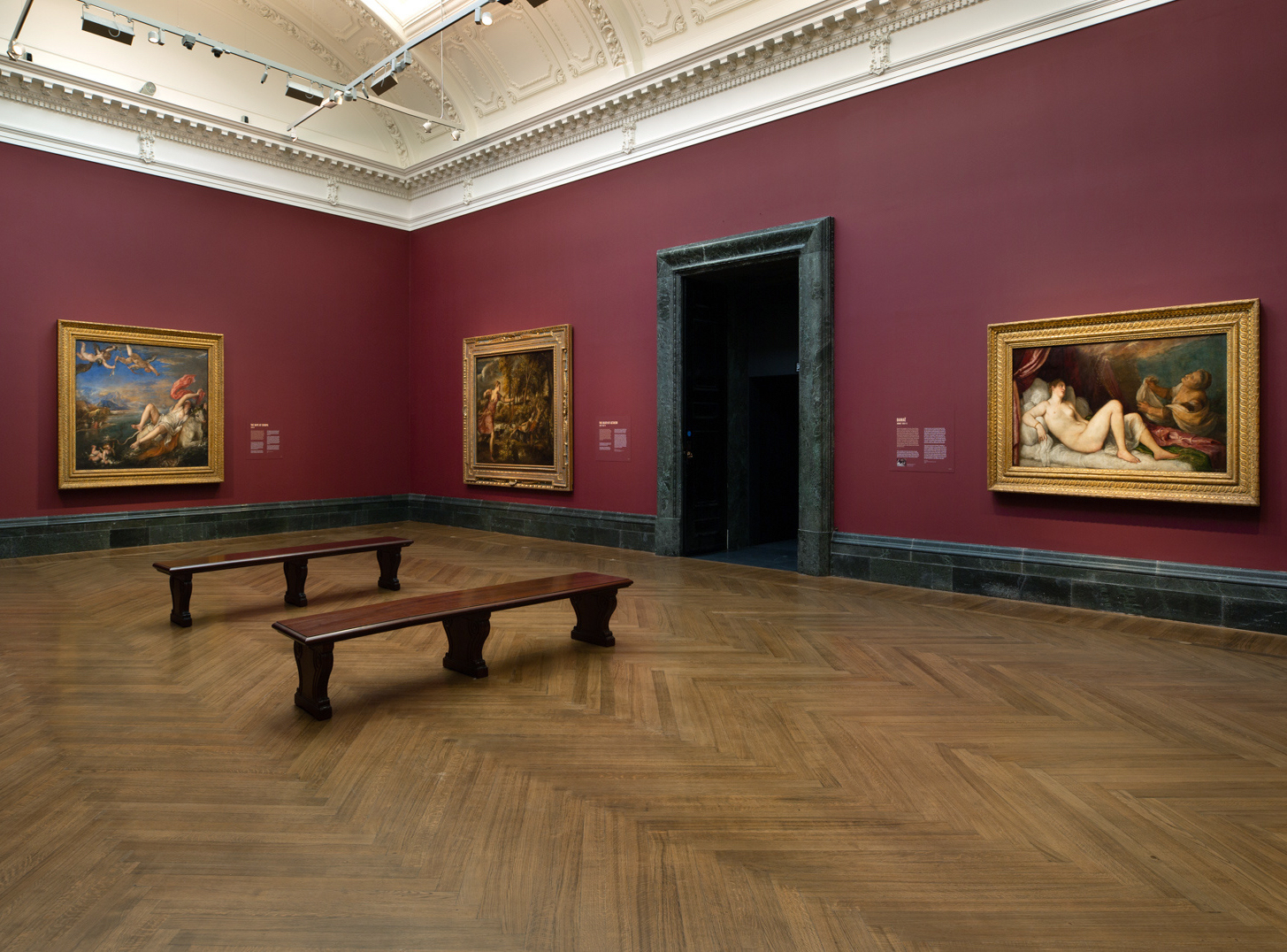 Charles Fitzroy points out that the eroticism of their treatment would have made any collector other than the king liable to heavy fines and possible excommunication: hence their disappearance into a fog of silence once they were in Philip’s possession, so that the location and setting in which they were displayed remains a matter of guesswork [6]. He also notes that Philip’s life in Spain was one of constant movement between one palace and the next, as he travelled between those in Madrid, Toledo and Aranjuez, probably with most of the furnishings he required in a hefty baggage train (although it is difficult to imagine how an increasing collection of canvases, all around six feet by seven, was moved from palace to palace by horse and cart; would they have been in temporary frames? removed from the stretchers and rolled?).
