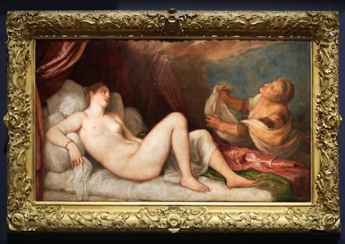 Titian (1490-1576), Danaë and the shower of gold, 1551-53, o/c, 114.6 x 192.5 cm., 19th century French-style Baroque revival frame, Wellington Collection, Apsley House, London