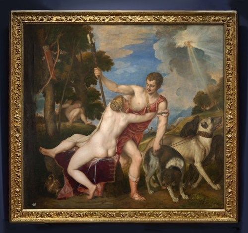 Titian (1490-1576), Venus and Adonis, 1554, o/c, 186 x 207 cm., revival cassetta frame, 19th or 20th century, Museo del Prado