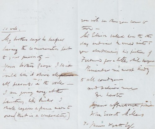 J.E. Millais (1829-96), letter addressed to ‘James Wyatt Esq’ [the younger] & dated ‘Thursday 12th’; endorsed in pencil ‘(Dec. 1850)’, presumably by James the younger or his daughter. Bonhams, 29 September 2010, lot 105