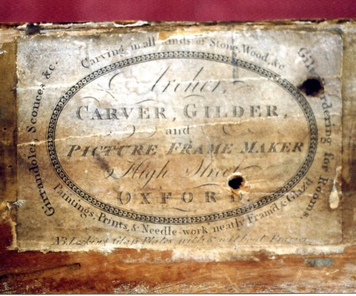 This was James Wyatt; a carver and gilder and printseller (as he described his business in his will) who flourished in Oxford for the first half of the 19th century, passing his business on to his son, James Wyatt the younger, for the next twenty-five to thirty years. Jacob Simon’s entry for the Wyatts in the online Directory of British picture framemakers, 1600-1950, gives a detailed and meticulously researched outline of their business and chronology; this article has been produced to flesh out the skeleton with illustrations and some further details.
