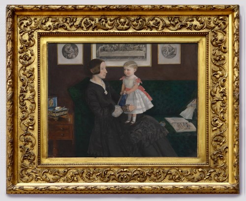 J.E. Millais (1829-96), Mrs James Wyatt the younger & her daughter Sarah, c1850, o/ panel, 35.3 x 45.7 cm., Tate