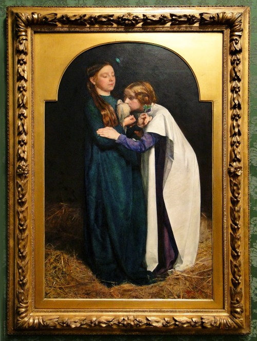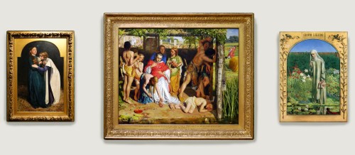 Millais persuaded Combe to hang the three paintings, Hunt’s, his own Dove, and Collins’s, together on a white wall of his house, where, despite the slightly different frames, they hung as a kind of contemporary triptych (as they hang now, in the Ashmolean).