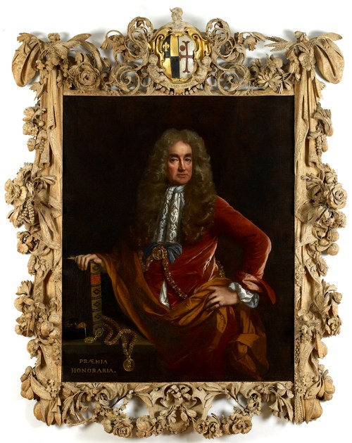 John Riley (1646-91), Elias Ashmole, c. 1681-82, with carved by Grinling Gibbons (1648-1721) after recent restoration, WA1898.36, © Ashmolean Museum, University of Oxford