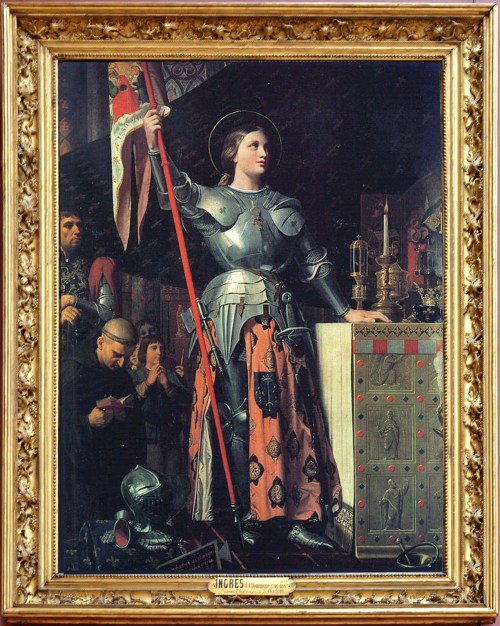 J-A-D. Ingres (1780-1867), Jeanne d’Arc au sacré de Charles VII, 1851-55, o/c, 240 x 178 cm., & detail, Musée du Louvre