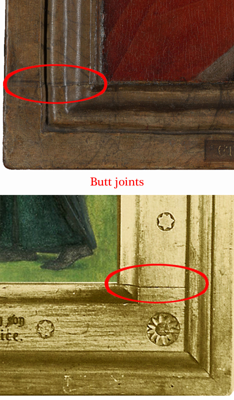 Jan van Eyck , Margaret, the artist’s wife; D.G. Rossetti, The salutation of Beatrice & Dante…; details of horizontal joints